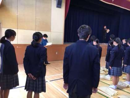 今週は、「生活習慣定着と中学校生活上で注意すること」のため、全校集会を行っています。