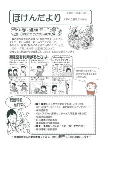 4/13 保健室 「保健だより4月号」が配布されています。