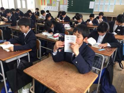 今日から、1、2年生では、朝の時間の読書が始まりました。各教室では静まり返って本を読む子どもたちの姿が見られました。