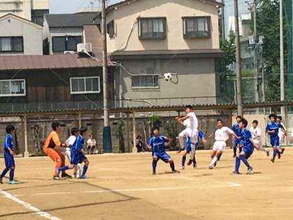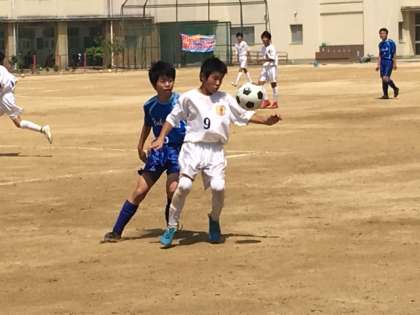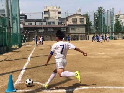 大阪市ベスト4に進出を果たした、本校は、決勝進出をかけて、本庄中学校グランドで夕陽丘中学戦を迎えました。前半は両チームとも押し合う展開でしたが、先取点を取ったのは本校でした。