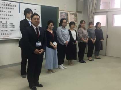 同じく放課後、PTA総会が行われ、平成29年度事業報告と決算、平成30年度事業計画と予算案が審議され、承認されました。また、平成30年度の役員の皆さんの選出、承認も行われました。