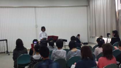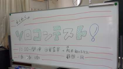 本日午前中、吹奏楽部は部独自の「わくわくソロコン」を開催しました。多くの保護者のみなさん、卒業生を前にして、どきどきしながらも、今までの練習の成果を発表しました。