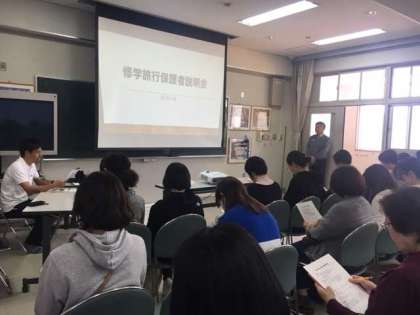3年生では、中間試験が終わって、九州へ修学旅行にでかけます。今日はその説明会を保護者の皆さまを対象に行いました。