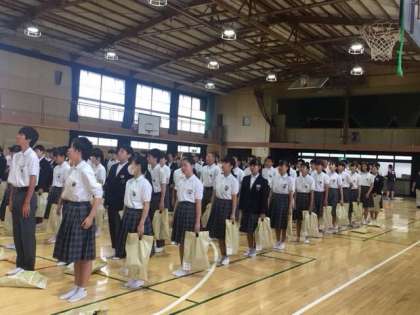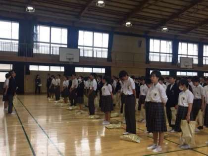 3年生では、今日、水曜日定例の学年集会を行いました。3年生では、来週の初めての実力テスト、その後の九州修学旅行を控え、いろいろな注意がありました。