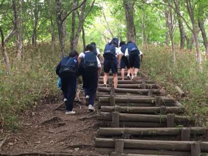 登山は、山の中の急坂を登りきると、きれいな尾根にでます。