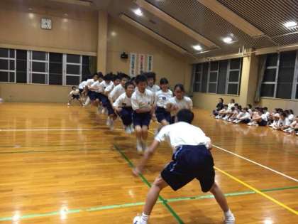 レクリエーションも最高に盛り上がってきました。大縄とびです。