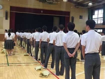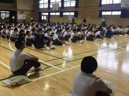 水曜日の3年生の学年集会が行われています。いよいよ近づいてきました、修学旅行のお話が主になります。