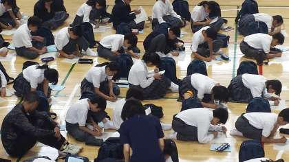 1年生は2限目に登校し、明日からの6時間授業に備え、体育館で健康観察を行いました。あまり疲れも見せず、元気に登校してくれました。一泊移住の成果もあり、迅速に行動ができていました。一泊移住の振り返りも行い、これからの1年生のみなさんに期待です。