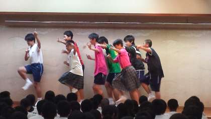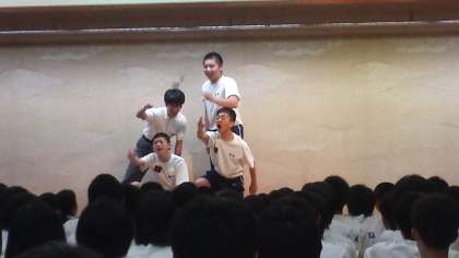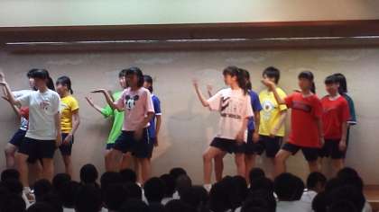 1日目最後は、夜のレクリエーション大会です。各クラスの出し物が発表されます。