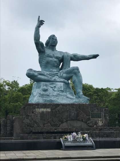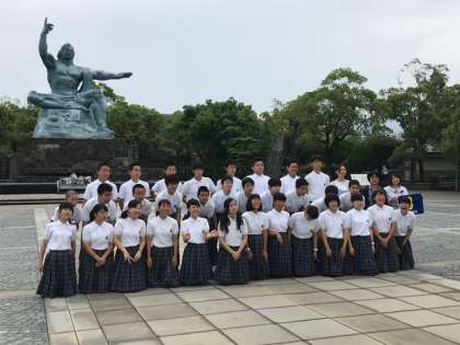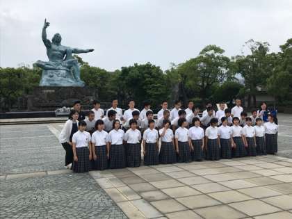 長崎平和祈念像前で、クラス写真です。1、3組です。