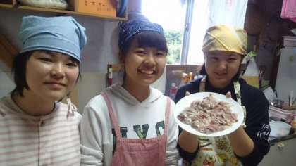現地では、入村式が行われ、各家庭に向かいました。家庭では、早速、今日連れたばかりの魚をお刺身にしていただきました。ごちそうです。