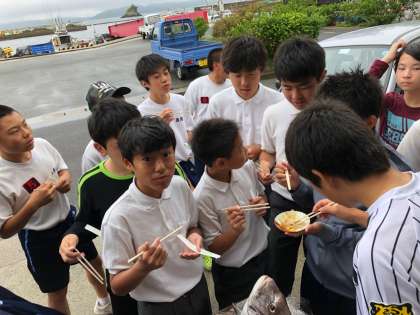 地引網に挑戦です。獲れた魚をその場でいただきました。新鮮で美味しいです。