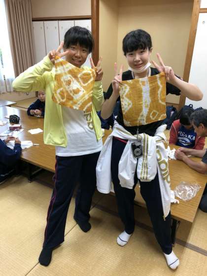民家での体験活動です。魚釣りのほかに、染め物も体験しました。