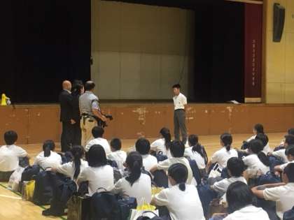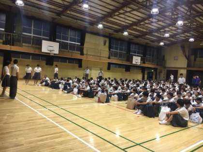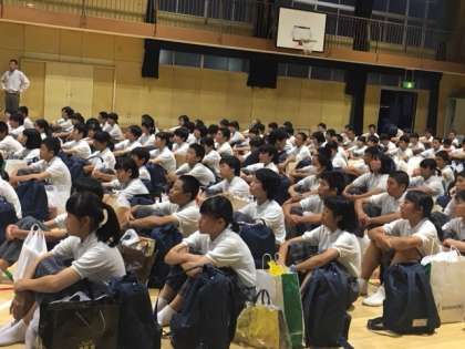 帰校式は体育館です。団長の教頭先生のお話や、代表の人からは、協力いただいた旅行業者やカメラマンさんに感謝の言葉が述べられました。とても思い出多い、いい修学旅行となりました。