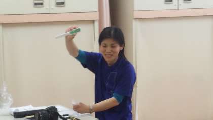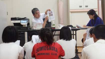 放課後、保健室で本校の学校歯科医の先生から「歯と口の健康」について教えていただきました。一般的な「歯をみがこう」のお話ではなく、歯のかみ合わせと体の姿勢との関係など違った観点のお話をいただきました。