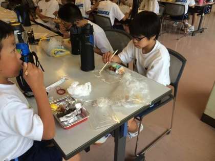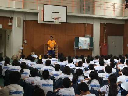 お弁当の昼食の後、入所式で施設や体験スポーツの説明を詳しく受けました。