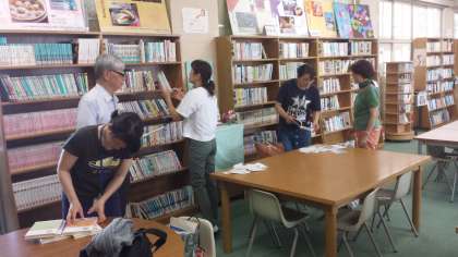 今日は学校図書館補助員さん、図書ボランティアさん、学校元気アップコーディネーターさんらによって、図書室の清掃や本のラベルはがしや整理をしていただきました。いつも図書室で気持ちよく読書や学習できる空間をつくっていただきありがとうございます。