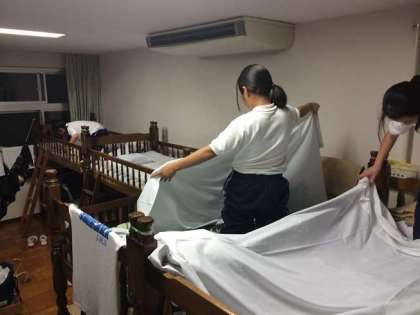 ベッドメイキングをして就寝です。明日は6時起床です。