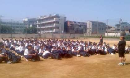 1年学年代表の生徒の進行により、グランドで解散式を行いました。