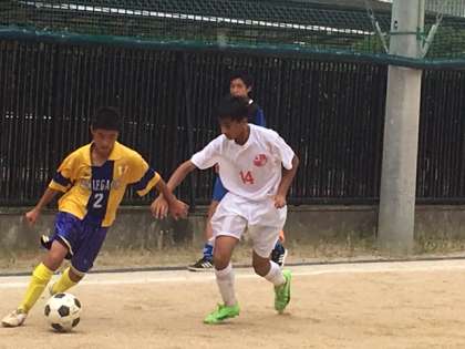 サッカー部では、現在、大阪市大会出場めざして、ブロック予選リーグに臨んでいます。4戦するうちここまで、1勝1敗と互角の戦いを続けている、本校ですが、今日の3戦目は勝利し有利に持って行きたいところです。