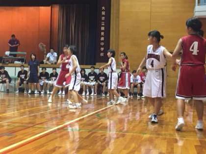 女子バスケットボール部も、現在、ブロック大会に臨んでいます。2日は、会場は男子と同じ西成区鶴見橋中学で、5位決定戦です。対戦相手は、同じ住吉区の我孫子南中学校です。