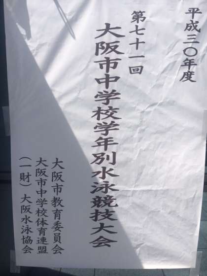 本校は昨年度、この大会で総合優勝を果たしています。今年もこの「大阪市中学校水泳大会」で総合優勝連覇を目指して頑張ります。