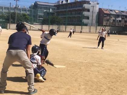 今日も晴れて日差しはきついですが、さわやかな暑さも感じる、いいコンディションとなりました。野球部に所属する本格的な選手もいれば、女子生徒や地域の保護者の方も加わり、和やかな雰囲気で行われました。