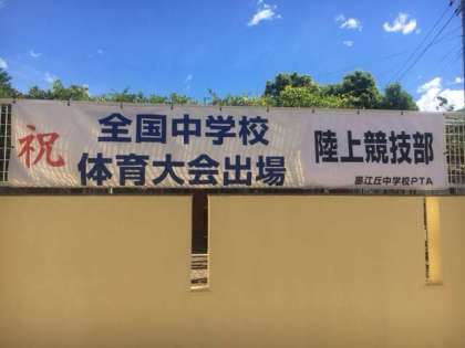 8/22 陸上競技部 「全国中学応援横断幕ができています。」
