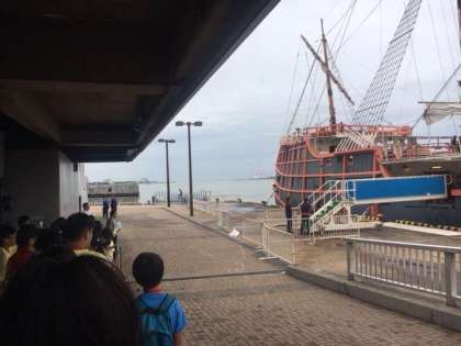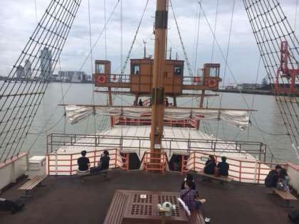 昼食の後は、帆船サンタマリア号での大阪湾クルーズです。海から見る景色も新鮮で、違う大阪を見ることができました。