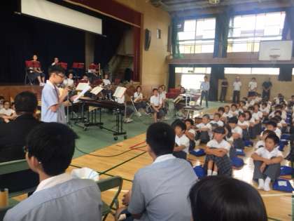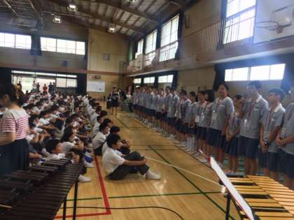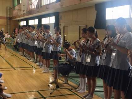 そして、それぞれの学校から、歓迎の催しが行われ、正徳中学は二胡や縦笛による合奏が披露され、本校は吹奏楽部の演奏で歓迎しました。
