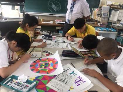美術の授業では、いっしょに作品作りを行い、数学ではプリント問題を懸命に解いています。