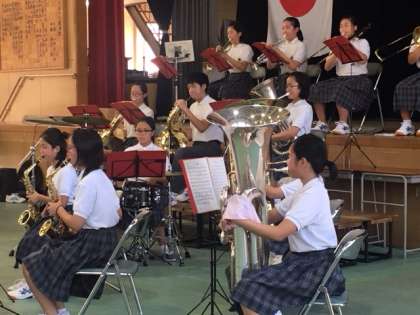 9/16 吹奏楽部 「敬老記念式典で演奏披露−墨江町会」2