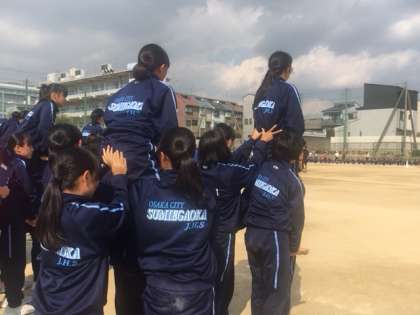 来週27日(木)に迫った、「第41回体育大会」に向けて、練習が本格化しています。今日の6時間目は、全学年で「騎馬戦」の練習です。素早く、馬を組み立てるところから勝負が始まっています。