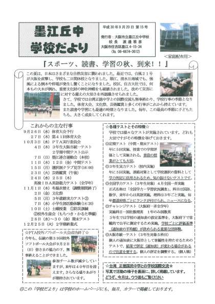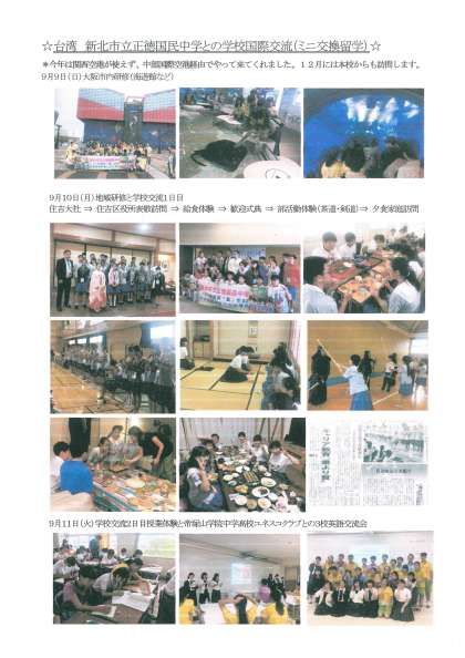 「学校だより9月号」発行しました。今月は、裏面に台湾国際交流の写真を挙げています。