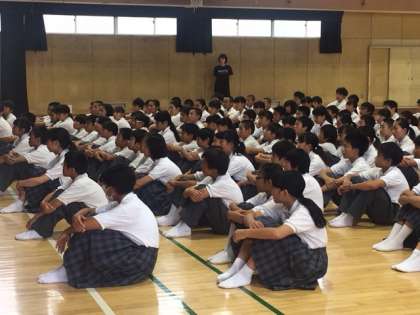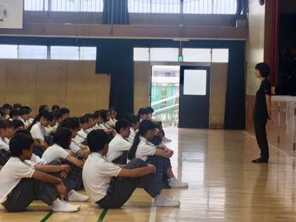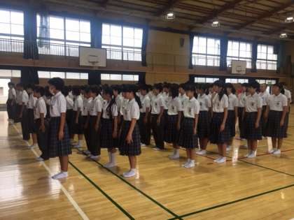 金曜日は1年生の学年集会です。体育大会に向けて、協力についてお話がありました。