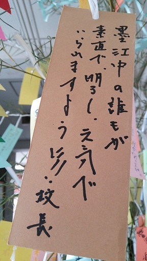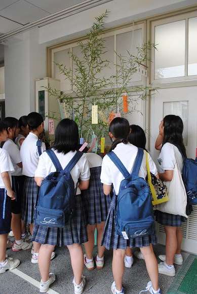 生徒は心をこめて、一生懸命お願い事を書いていました。