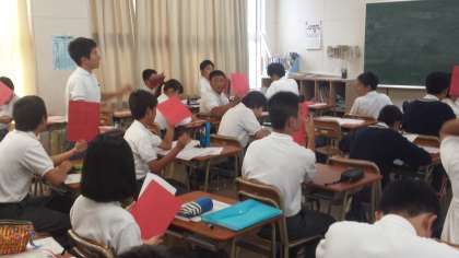 先日「体育大会」を終え、今週からは、11月の文化祭に向け、それぞれの学年・クラスで再び取り組みが始まります。今日6限目に、3年生は「合唱歌詞カード」を作ったり、文化祭までの日めくりカレンダーを作成したりなどを行いました。
