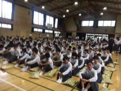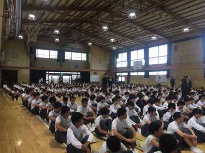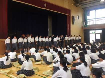 週の初め、月曜日は全校集会です。今日は授業作品を提出した、美術展の表彰伝達を行いました。