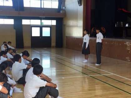 木曜日は、朝、2年生が、定例の「学年集会」を行いました。