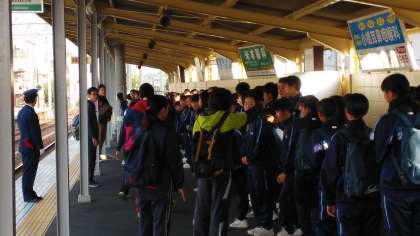 2年生の3,4,5組は校外学習に出かけました。南海電鉄に乗って、浅香山駅で下車し、関西大学へ向かいます。