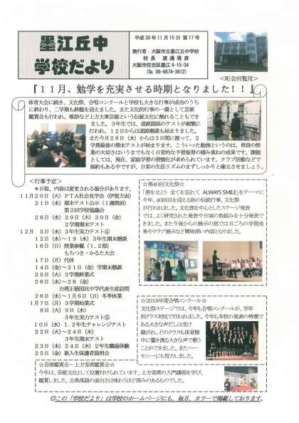 本日、「学校だより11月号」の配布を行いました。またこの学校だよりは、町会回覧板にて地域の皆さんにもご覧いただきます。