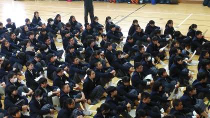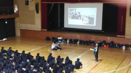 5限目に、2年生は、1月に2日間実施される「職場体験」の全体説明会を、生徒のみなさんに行いました。過去に行った先輩たちの体験画像を見ながら、イメージをつくり、今後の取り組みの流れを確認しました。
