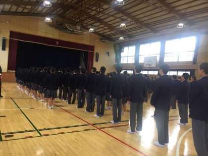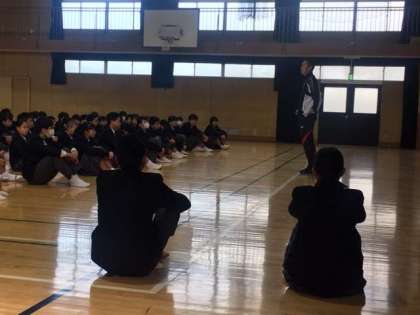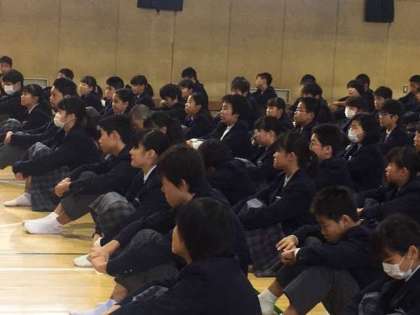 水曜日は、3年生の学年集会の日です。8:25前には全員そろって、集会が始まりました。
