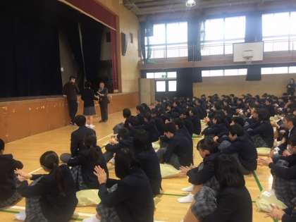 月曜日、「全校集会」です。12月最初の集会ですが、2学期も残すところ、3週間余りになりました。