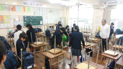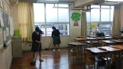 放課後、各教室では、清掃班のそうじの終了後、教室の床の保湿のため、環境委員のみなさんが、油引きをしてくれました。