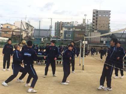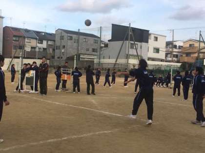 今日、月曜日午後から、3年生は球技大会に取り組みました。種目はバレーボールです。クラス対抗で行われ、点が入るたびに歓声があがります。