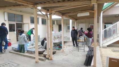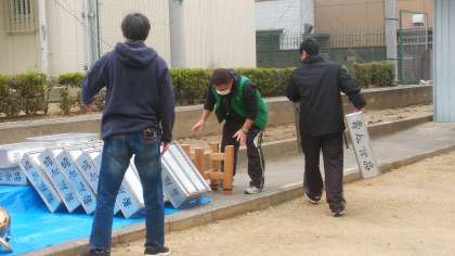 早朝からとても寒い中、明日の「もちつき大会」のために、PTA役員・実行委員の方々をはじめ、多数の皆さまにお集まりいただき、ご準備いただきました。いつもありがとうございます。明日のお餅つきが楽しみです。