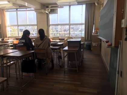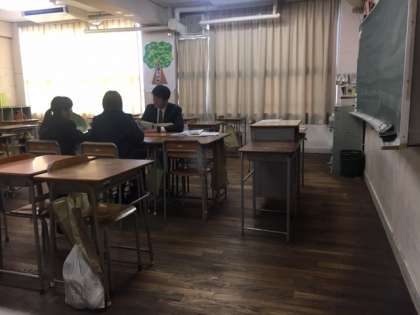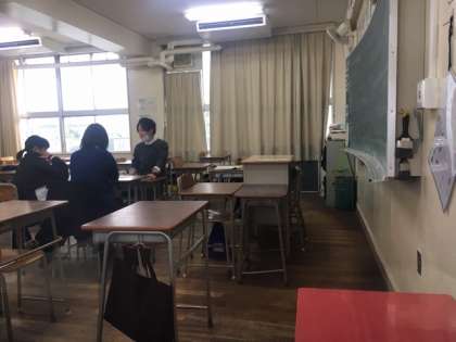 現在、各教室では、期末の個人懇談会が行われています。教室では、熱心に話し合われる姿が見られます。