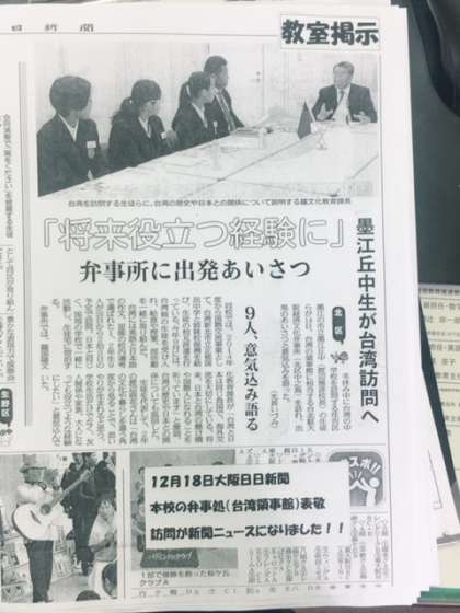 台湾訪問メンバーは、14日(金)に台北駐大阪経済文化弁事処を表敬訪問しましたが、その訪問が新聞でニュースとして報道されました。