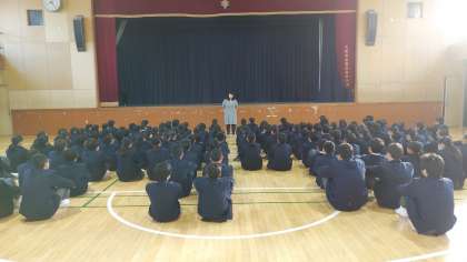 3学期に入って、最初の金曜日、定例の「学年集会」を行いました。2年生への準備、いわゆる「2年生0学期」がスタートしましたよ、とお話が、担当の先生からありました。さまざまな場面での成長があったと思いますので、来年度に生かし、活躍してほしいです。